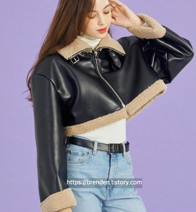 콜릿 WOMEN 크롭 오버핏 B-3 무스탕 플리스 자켓 Black_Beige
