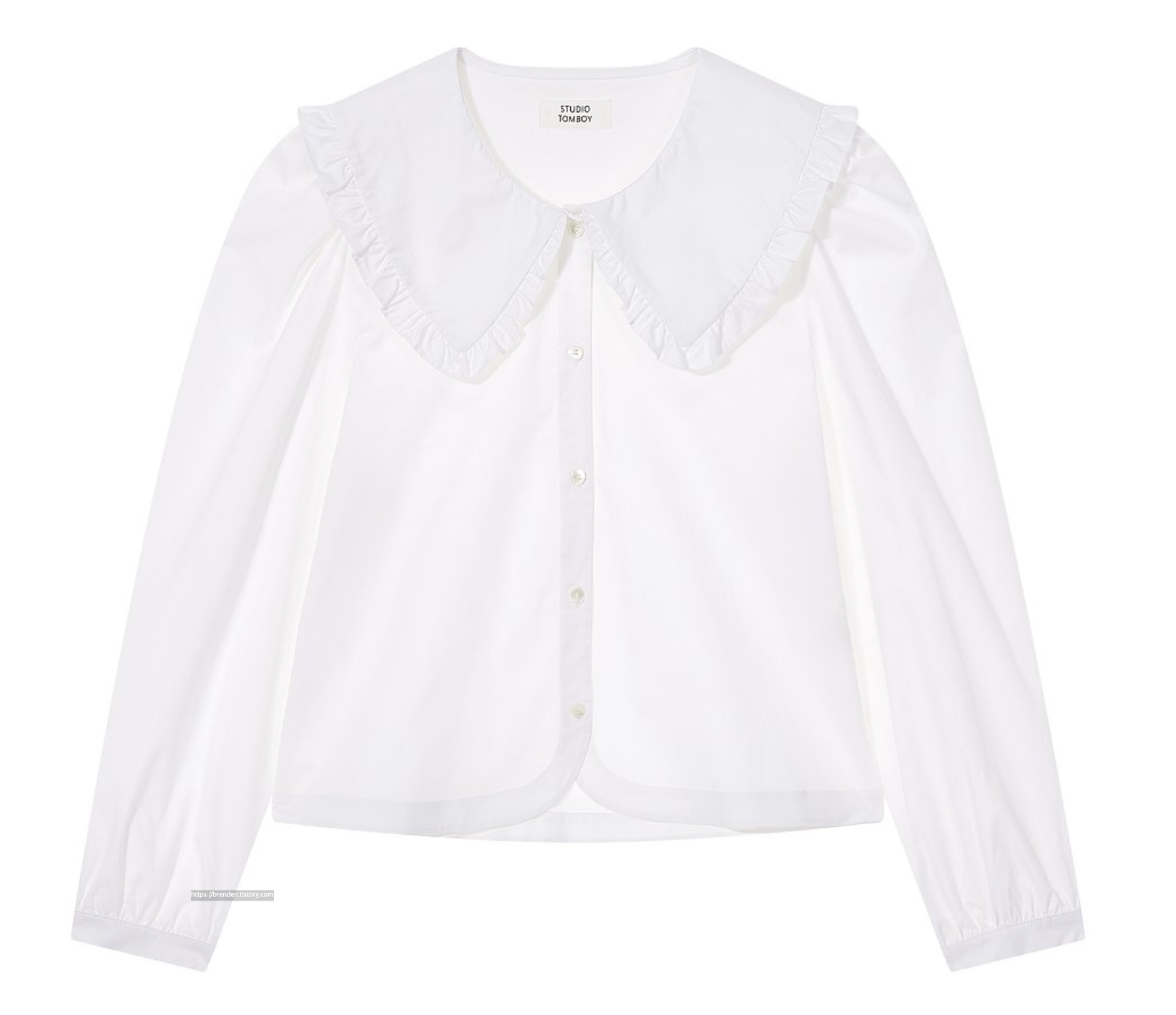 스튜디오 톰보이 러플카라 솔리드 블라우스